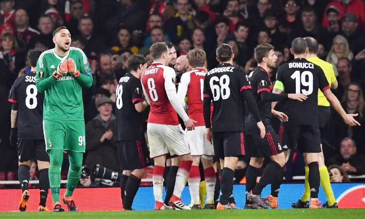Calhanoglu illude, ma l’Arsenal – anche con gli ‘aiutini’ decisivi dell’arbitro Eriksson e di Donnarumma – la ribalta ed estromette il Milan dall’Europa League. Niente rimonta all’Emirates, Wenger (doppietta Welbeck e Xhaka) batte Gattuso 3-1 infrangendo i sogni continentali dei rossoneri, che solo nel finale hanno mollato. E’ passata la squadra migliore, considerato anche il match d’andata, ma non puo’ non pesare nel giudizio complessivo il rigore (inesistente) assegnato all’Arsenal subito dopo il vantaggio del Milan. A caccia dell’episodio che riaprirebbe subito il discorso-qualificazione, il Milan confeziona dopo appena 45 secondi una bella azione sulla fascia destra rifinita da Borini, ma Andre’ Silva – che fa coppia con Cutrone dopo essersi finalmente sbloccato in campionato – centra soltanto l’esterno della rete da ottima posizione. Gattuso se la gioca con il 4-4-2, larghi Suso e Calhanoglu, c’e’ Montolivo al fianco di Kessie in mezzo. In panchina Biglia e Bonaventura. Nell’Arsenal, forte del 2-0 di San Siro, Wenger ripropone il trio Ozil-Wilshere-Mkhitaryan alle spalle di Welbeck, unica punta di ruolo a disposizione viste le indisponibilita’ di Lacazette e Aubameyang. Si arrende dopo appena 11 minuti Koscielny (schiena): va Chambers a far coppia in difesa con l’ex Samp Mustafi. Scampato il pericolo iniziale, i Gunners iniziano a tessere la tela che tanti danni ha creato ai rossoneri sette giorni fa: passaggi corti e di prima ad alta velocita’, ma Montolivo e Romagnoli riescono a metterci una pezza sulle iniziative di Monreal e Mkhitaryan, mentre e’ decisiva la respinta di Donnarumma al 25′ su Welbeck.[irp]