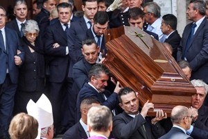 BANDIERE A MEZZ’ASTA I funerali si sono svolti nella chiesa di San Saturnino a Roma. Presenti tra fli altri Mattarella