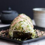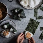 Chiudete adesso il riso con entrambi le mani e con la mano superiore date la forma all’onigiri, bisogna rigirarlo più volte nello stesso verso fino a formare un triangolo spesso circa due dita. Applicate il rettangolo di alga nori alla base del triangolo, così da poterlo prendere senza sporcarvi le mani. Se si desidera decorarli, passate sui bordi degli onigiri dei semi di sesamo. Gli onigiri possono essere preparati il giorno prima e conservarti in frigo coperti con della pellicola per alimenti o addirittura congelati per poi mangiarli quando si desidera.