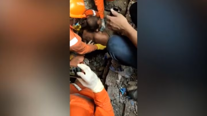 Grida e applausi: uomo estratto vivo dalla macerie in India