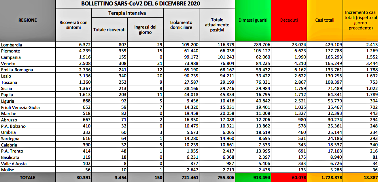 Le regioni con il maggior numero di casi sono Veneto e Lombardia. Abruzzo rientra in zona arancione