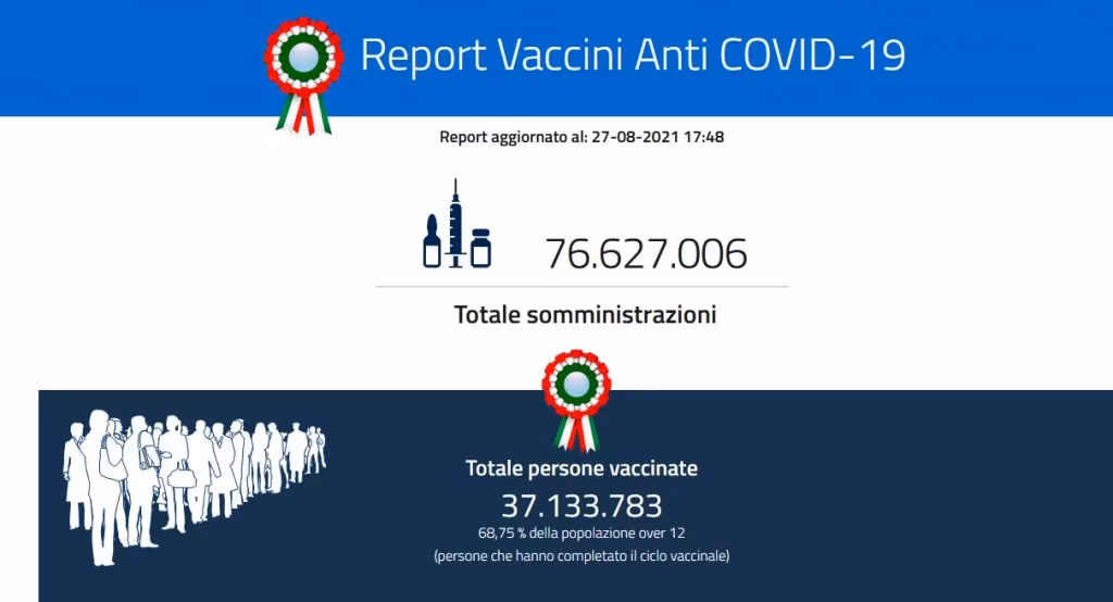 Nino Cartabellotta, presidente della Fondazione, ha fatto il punto anche sull’andamento della campagna vaccinale, che ha subito una brusca frenata: “Durante il mese di agosto si è assistito ad un crollo del 66,5% delle somministrazioni: la media mobile a 7 giorni è passata dal picco di oltre 592 mila del 28 luglio a poco più di 198 mila il 20 agosto”. Ma il commissario straordinario per l’emergenza Francesco Figliuolo ha voluto rassicurare sul raggiungimento dell’obiettivo prefissato: “Oggi siamo al 72,5% di platea di vaccinabili che hanno ricevuto almeno una dose, che diventa il 77,7% se noi sommiamo i guariti che hanno avuto una dose e coloro che sono stati raggiunti da un vaccino monodose. Vuol dire che siamo vicini a quel traguardo dell’80%”.