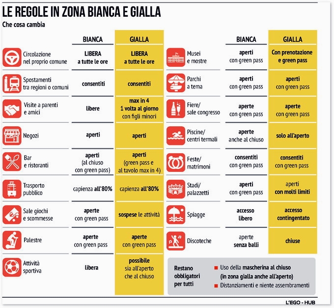 Quest’ultimo dato è in linea con l’analisi della Fondazione Gimbe: i contagi sono aumentati del 4,3% negli ultimi 7 giorni e l’incidenza “è pari o superiore a 50 casi per 100 mila abitanti in 68 province”. La Sicilia frattanto torna in zona gialla. La nuova ordinanza è stata firmata dal ministro per la Salute Roberto Speranza. “Il virus non è ancora sconfitto – ha detto il ministro – e la priorità è continuare a investire sulla campagna di vaccinazione e sui comportamenti prudenti e corretti di ciascuno di noi”. Da settimane l’Isola registra i dati più alti d’Italia sul fronte dei contagi, ospedalizzazioni e decessi per coronavirus.