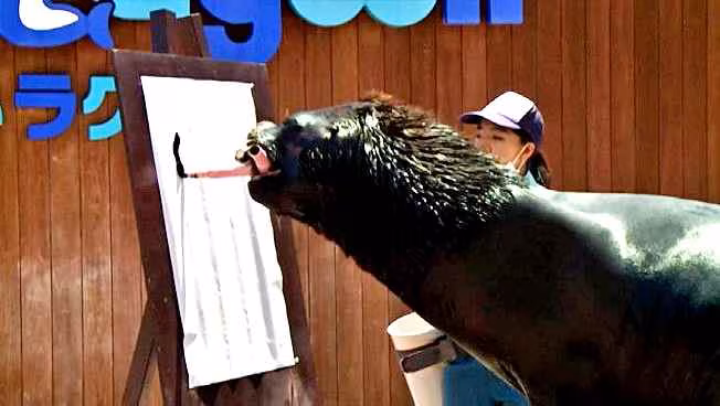 Con la speranza di scacciare la pandemia di nuovo coronavirus, il leone marino Leo, nota star del parco marino di Yokohama, in Giappone, ha disegnato “Amabie”, un mitico mostro dai capelli lunghi e il naso aquilino, che secondo la leggenda è in grado di cacciare le pestilenze. Sae Ishino, custode dell’acquario: “Eseguiamo il disegno di Amabie, sperando che la pandemia di nuovo coronavirus possa finire presto”.
