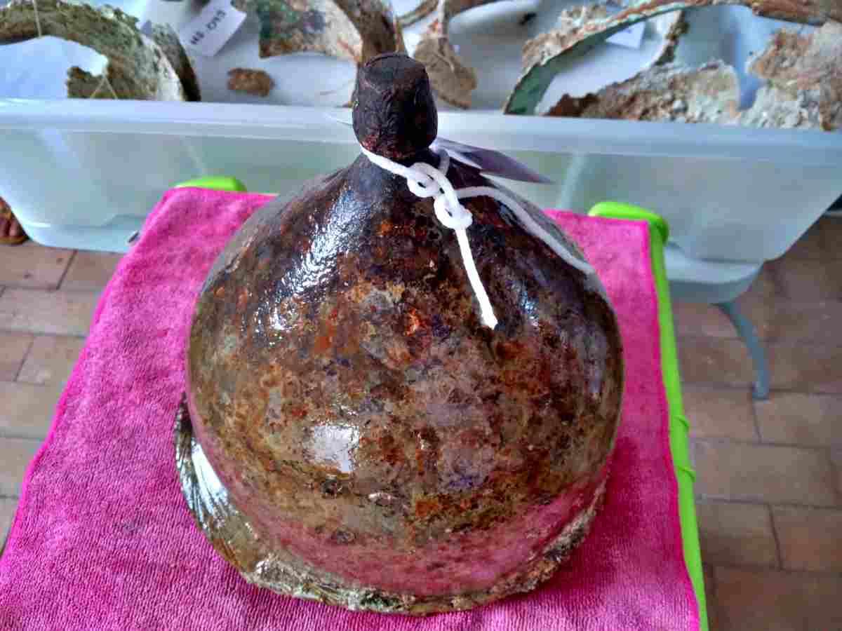 Oltre all’elmo, i sub hanno recuperato una grande maniglia in bronzo dal cosiddetto “relitto del banco dei pesci”, risalente al V secolo d.C., il cui uso rimane incerto. I reperti sono stati sottoposti a un primo trattamento conservativo dalle restauratrici della Sdss, grazie anche al contributo del mecenate statunitense Michel Garcia.