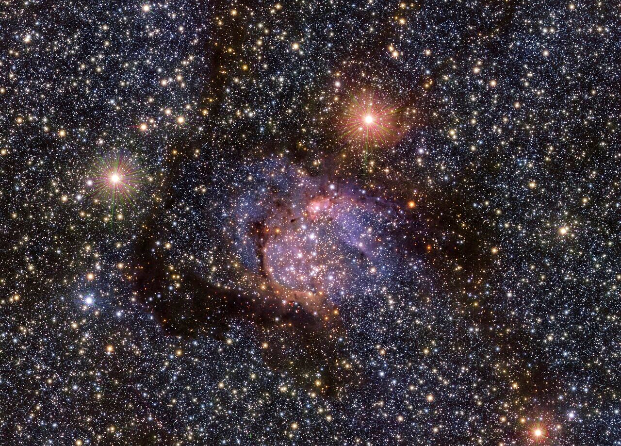 Questa immagine rivela quindi una vera raccolta di stelle nascoste dietro i veli di polvere. Ciò è particolarmente utile in quanto consente agli scienziati di studiare ciò che accade nei vivai stellari in modo molto più dettagliato e quindi di capire meglio come si formano le stelle. L’immagine – spiega l’ESO – è stata catturata in luce infrarossa utilizzando la sensibile fotocamera da 67 milioni di pixel del telescopio VISTA dell’ESO ospitato all’Osservatorio di Paranal in Cile. È stata ottenuta nell’ambito della survey VVVX (VISTA Variables in the Via Láctea eXtended survey, cioè le variabili VISTA nella survey estesa della Via Lattea). Si tratta di un progetto pluriennale che ha ripetutamente osservato un’ampia porzione della Via Lattea a lunghezze d’onda infrarosse, fornendo dati chiave per comprendere l’evoluzione stellare.