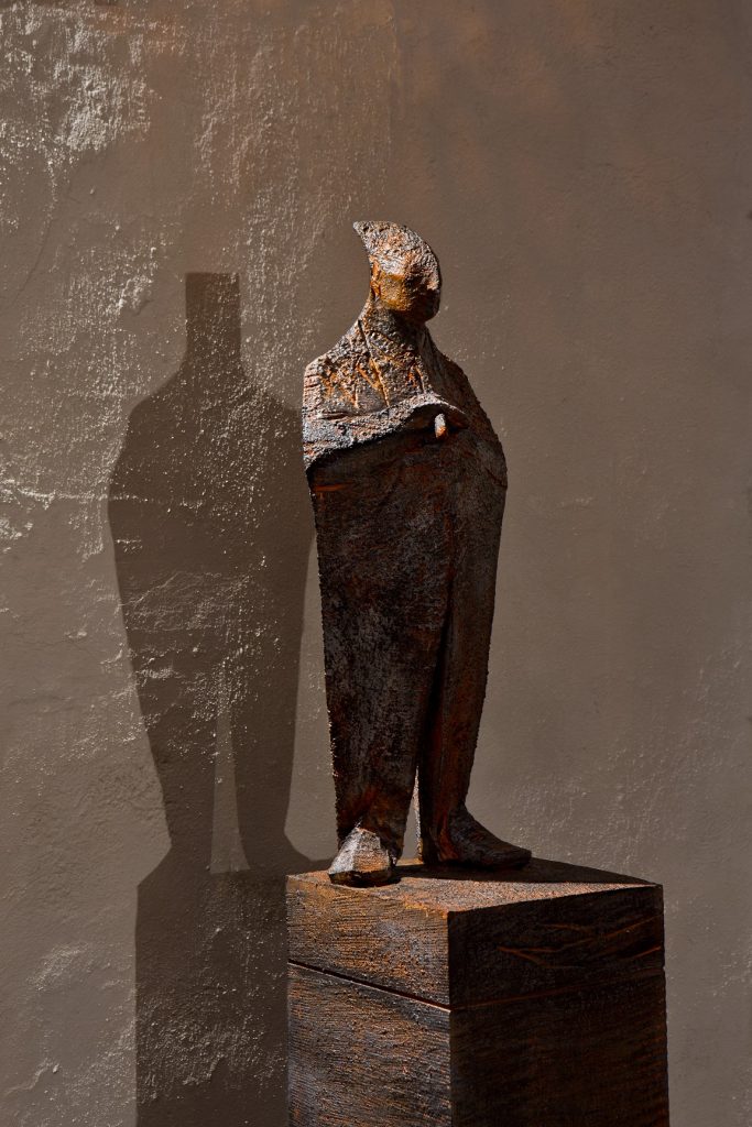 Esistono sculture razionali, che prendono l’osservatore dal punto di vista logico, analitico sulle forme, sui materiali utilizzati, sull’immagine in sé, conquistandolo sul lato estetico, e poi esistono quelle particolari forme espressive che catturano immediatamente l’emotività, la parte più morbida che affonda le sue radici nell’interiorità più profonda, a volte nascosta ma che non chiede altro che di potersi liberare ed emergere. È questo l’effetto che provocano le sculture di Wilhelm Senoner, nato a Ortisei in Val Gardena e che di quella terra prende il contatto con la natura e lo trasforma in mezzo comunicativo; le sue opere sono realizzate in bronzo ma per la maggior parte in legno di tiglio dipinto con colori acrilici e terre, con la particolare caratteristica che l’artista, prima di procedere alla fase della tinta. raccoglie i trucioli del legno generati dalla levigatura e li incolla per dare ruvidità e viscosità alle forme rappresentate.