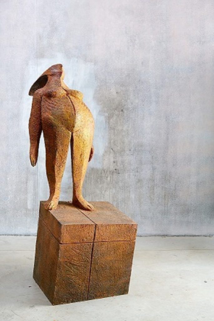 Perché in fondo è così che si presenta l’essere umano, lineare ma pieno di rughe, fisiche, emotive, intime, che lo rappresentano e lo seguono per tutto il corso della sua vita. I lavori di Senoner sono frutto di una ricerca personale sulla condizione dell’uomo contemporaneo, un uomo che nasce e vive per trovare il suo completamento, l’altra metà di sé che lo rende più forte, più sereno, più in equilibrio. Infatti nelle sculture in cui l’artista rende protagonista una sola delle due parti emerge la sofferenza, la malinconia e la fatica di essere al mondo in solitudine, la tristezza di non aver trovato la quadratura del cerchio che, magicamente, si compie solo e unicamente nell’incontro con l’altro. Quello al quale abbandonarsi, dentro il cui abbraccio sciogliersi, con cui parlare anche senza bisogno di usare parole, in quella dimensione ideale che Wilhelm Senoner racconta attraverso un delicato bacio sulla fronte, attraverso una vicinanza completa anche quando le due parti sono posizionate spalle a spalle però unite, come se il contatto fosse vitale per la loro individualità. La solitudine appesantisce le difficoltà quotidiane, suggerisce l’artista nelle opere colme di pathos in cui l’uomo e la donna singoli appaiono piegati all’indietro, sofferenti in quel loro voler restare in piedi ma con la urlante richiesta di essere sostenuti, di trovare quel tutto che li potrà rendere più forti.