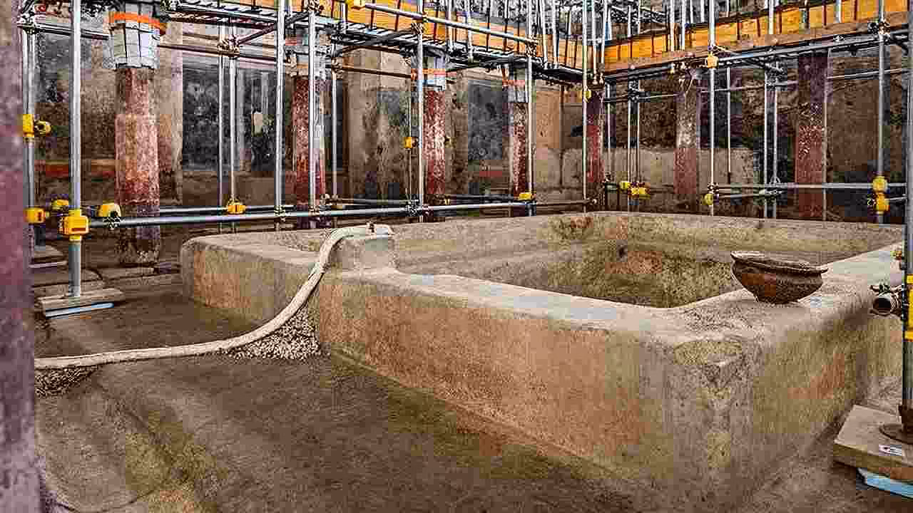 Un’eccezionale scoperta archeologica ha riportato alla luce un vasto e articolato complesso termale privato all’interno di una domus di lusso, connesso a un salone per banchetti, nel cuore dell’insula 10 della Regio IX di Pompei. Questo ritrovamento si distingue come uno dei più grandi complessi termali privati mai documentati nelle dimore pompeiane, accanto a esempi illustri come le terme dei Praedia di Giulia Felice, la Casa del Labirinto e la Villa di Diomede.