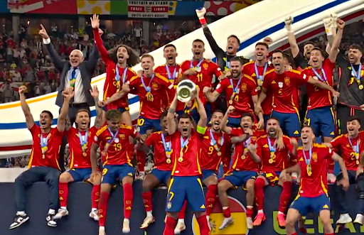 È la notte della Spagna. È la notte di De La Fuente e della spensieratezza dei giovani fenomeni spagnoli come Lamine Yamal (il 13 luglio ha compiuto 17 anni) e Nico Williams (il 12 luglio ha compiuto 22 anni) non a caso autore dell’assist e del gol che ha permesso di sbloccare il match con l’Inghilterra battuta 2-1 nella finale di Berlino. Il pareggio di Palmer ha solo messo paura. Poi ci ha pensato Oyarzabal a chiudere il match. Giorgio Chiellini “consegna” loro la coppa, quella vinta tre anni fa a Wembley.