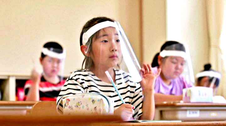 Visiere, distanziamento sociale e norme igieniche: è la nuova vita scolastica degli studenti della scuola primaria di Kinugawa a Nikko, circa 100 chilometri a nord di Tokyo. La scuola ha riaperto il primo giugno dopo 3 mesi di stop dovuti all’emergenza Covid-19. “Dato che le temperature non faranno che aumentare, i bambini corrono il rischio di un colpo di calore. Pertanto, su consiglio medico – spiega il preside Sachio Takeda – abbiamo deciso di usare queste visiere protettive, che si alzano così e permettono di respirare meglio in confronto alle mascherine”.
