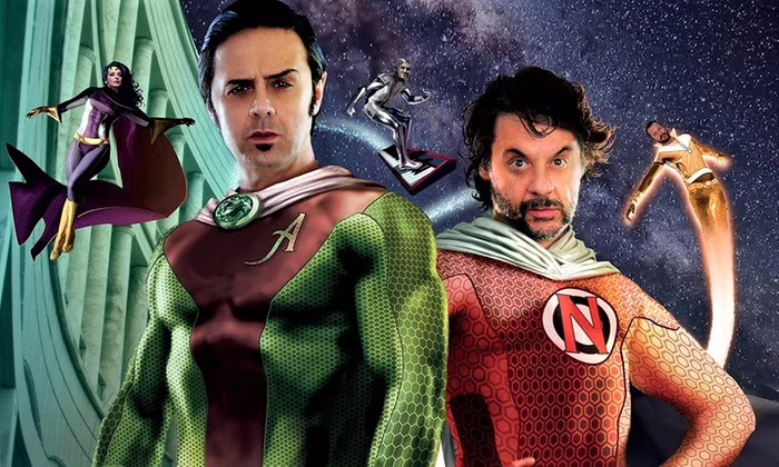 La presentazione dello spettacolo è già uno show. Sul palco accanto al duo comico e agli altri protagonisti Vania Della Bidia, Marco Fiorini e Attilio Di Giovanni, arrivano anche gli Avengers. Ma si parla sempre di superpoteri particolari. “Alcuni sono poteri inficianti, come quelli del bradipo, ovvero la grande lentezza, poi c’è Vania Della Bidia che è Telepentothal, con il potere di leggere nel pensiero e far dire la verità, cosa che è un disastro in un team di maschi. Poi io sono l’uomo elastico ma si capirà dopo di che tipo di elasticità dispongo e sono convinto di avere anche il potere dell’invisibilità e Saetta, invece, è un grande velocista come Flash che però ha anche il superfiatone poi”.