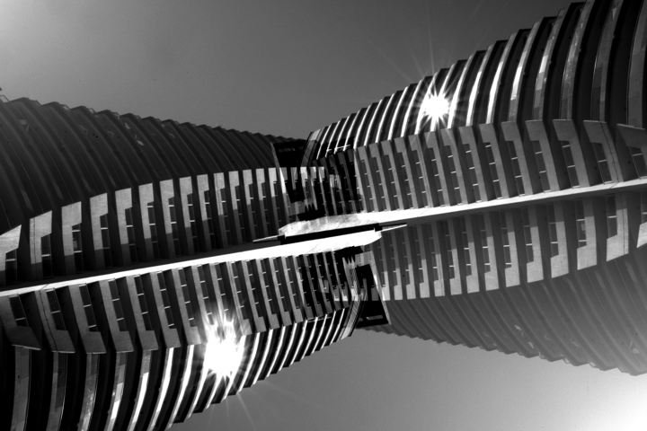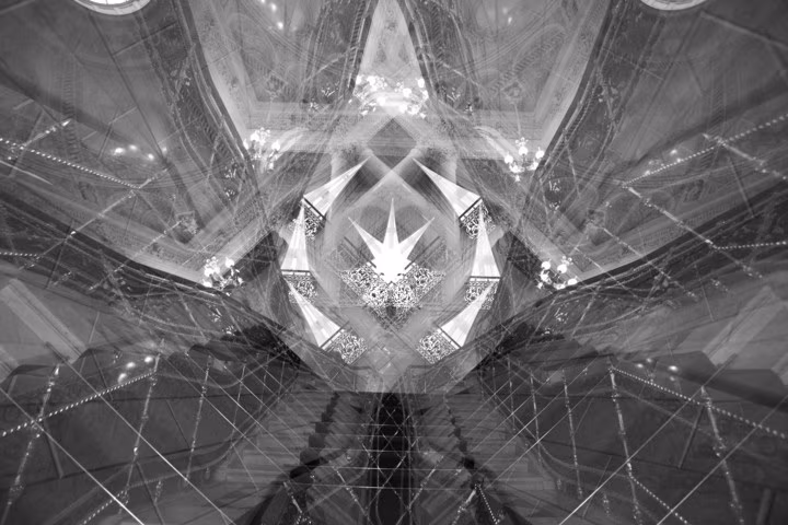 sebbene nelle sue immagini l’autore di queste meraviglie non appaia quasi mai, forse per una discrezione che la sensibilità di Maurizio Gabbana ha nei confronti delle emozioni più intime che riuscirebbe a rivelare, carpire senza essere visto. O forse solo perché sente che la sua inclinazione è quella di dare voce a ciò che è inanimato, di far parlare e dialogare tra loro parti diverse della natura, quella pre-esistente e quella nuova creata dall’uomo, in una sinergia spettacolare e sorprendente che conquista immediatamente l’osservatore. Lo sguardo infatti vaga all’interno dell’immagine, cerca di capire cosa si nasconda dietro, quale simbolo della città immortalata sia mimetizzato dietro la frammentazione, quali siano le luci che si rifrangono e lo illuminano fino a celarne i confini e celarsi oltre essi. E poi Maurizio Gabbana di colpo sorprende perché sceglie in alcuni scatti, e solo in alcuni, di dare una rappresentazione più classica raccontando il dettaglio, la scalinata, l’interno di un edificio, esattamente come sono, senza trucchi, senza effetti prismatici, esaltando la grandezza dell’uomo che ne ha eseguito il progetto e la realizzazione, per ricordare agli osservatori contemporanei, che spesso si perdono nella velocità del vivere, che ciò che è oggi è stato costruito da contemporanei di un’altra epoca e che ciò che osservano distrattamente è il frutto di un sogno, di un’immagine visionaria che è stata trasformata in realtà. L’essere umano è raffigurato solo quando parte di un tutto, immagini in metropolitana, momenti di vita intravisti tra la folla oppure – come nella serie Pringles realizzata ponendo l’obiettivo alla fine di un tubo delle celebri patatine -, quando può scattare senza essere visto, per mantenere intatta la spontaneità e naturalità del frammento di esistenza che vuole immortalare.