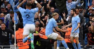 Dopo diverse palle gol sciupate, al 23′ arriva la rete di Bernardo Silva. In chiusura di primo tempo ancora Bernardo Silva realizza la sua personale doppietta di testa. Il Real colpisce una traversa con Kroos e nella ripresa ci prova. Un’autorete di Militao chiude i giochi e Alvarez realizza il poker