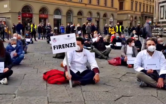 Momenti di tensione in piazza Strozzi a Firenze per gli scontri nel corso della manifestazione non autorizzata contro il decreto del Presidente del consiglio sulle nuove misure anti-Covid. Alcuni manifestanti sono rimasti feriti, tra cui un uomo con una evidente ferita da taglio all’altezza dell’occhio. Tra i feriti anche un ragazzo giovanissimo. La polizia ha caricato ancora in via degli Strozzi – nel centro storico della città, a un passo dalla via dello shopping, via Tornabuoni – e i manifestanti hanno lanciato oggetti, lacrimogeni e petardi. Ingenti sembrano anche i danni all’arredo urbano con alcune fioriere divelte e telecamere di sorveglianza che sono state spaccate.