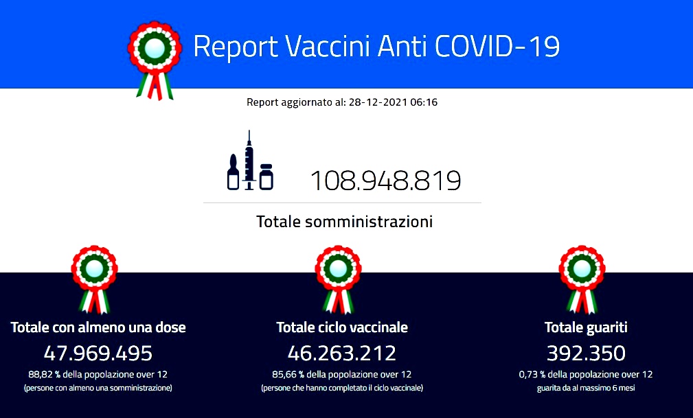 In cifre, secondo l’odierno bollettino del ministero della Salute sull’andamento della pandemia, in Italia sono 78.313 mentre sono 202 i morti. Cifre che portano a un totale di contagiati pari a 5.756.412 e di vittime pari a 136.955. Rispetto a ieri (30.810 contagi, 142 morti) si contano 47.503 casi e 60 decessi in più. Con oltre un milione di tamponi effettuati, i casi testati positivi tornano a crescere sensibilmente, colpa anche dei pochi test effettuati nei giorni di Natale. Si pensi che a ieri i nuovi contagi erano 30.810 su 344mila tamponi. Esattamente sono 1.034.677 i nuovi tamponi effettuati rispetto a ieri: il tasso di positività si attesta al 7,57% (in calo: ieri era al 9%). Aumentano anche i ricoveri nei reparti ordinari, 366 persone ricoverate in più, su un totale di 10.089, e altre 19 posti letto occupati in terapia intensiva, che porta a 1.145 il totale.