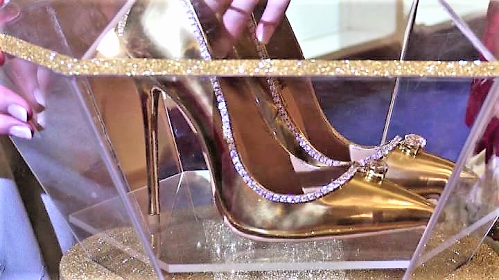 Ecco le scarpe più care del mondo: un paio di decolleté con tacco a spillo in oro, pelle, seta e 236 diamanti del valore di 17 milioni di dollari (circa 14,5 milioni di euro). Sono state esposte nel lussuosissimo hotel Burj Al Arab di Dubai. Le Passion Diamond Shoes, realizzate dal marchio Jada Dubai con Passion Jeweller, come si legge sulla soletta a grandi lettere oro, hanno sulla punta anche due rari e costosi diamanti D da 15 carati ciascuno; gli altri, più piccoli, corrono lungo tutto il bordo. Per realizzare questa calzatura esclusiva ci sono voluti 9 mesi.