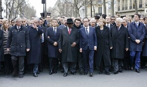 Con Hollande ci sono tra gli altri Renzi, Cameron, Merkel, Juncker, Netanyahu e Abu Mazen