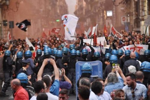 MANGANELLI E LACRIMOGENI “Quelli che contestano e spaccano tutto non hanno in testa il futuro dell’Italia”, ha concluso. Renzi ha lasciato villa Bellini pochi minuti prima delle 19, dopo aver terminato il suo discorso che ha chiuso la Festa nazionale de L’Unità. Andando via, il premier non ha rilasciato dichiarazioni alla stampa. Nel frattempo fuori da villa Bellini è rientrata la tensione tra i manifestanti e le forze dell’ordine, giunti allo scontro lungo corso Umberto. Il corteo era partito da piazza Jolanda alle 17, ed aveva raggiunto l’area antistante villa Bellini. Qui gli uomini delle forze dell’ordine, in assettoo antisommossa, hanno contenuto l’avanzata dei manifestanti. A questo punto si è innescato un violento scontro con colpi di manganello, fumogeni e lacrimogeni. Due giovani di 21 e 24 anni sono stati fermati dalla Digos di Catania. I due ragazzi sono stati accompagnati in Questura, davanti alla quale si è radunata una piccola folla che ha voluto esprimere solidarietà ai due. Il Capo della Polizia Franco Gabrielli si è complimentato attraverso il Questore di Catania Marcello Cardona per la attività svolta da tutte le forze dell’ordine impegnate nel capoluogo etneo.