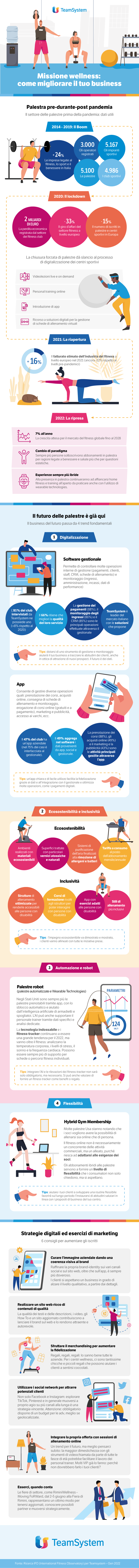La palestra diventa digitale: il futuro del settore wellness si va delineando, tra nuovi trend, eventi di settore di rilievo e una solida base-dati. TeamSystem – leader italiano nel mercato delle soluzioni digitali per la gestione del business di imprese e professionisti – attraverso l’infografica “Missione wellness: come migliorare il tuo business”, ha delineato la situazione del digitale nei club presenti in Italia in vista del RiminiWellness, la più grande kermesse al mondo dedicata a fitness, benessere, sport, cultura fisica e sana alimentazione, in programma dal 2 al 5 giugno 2022 alla Fiera di Rimini. Tanti gli ospiti e le ospiti d’eccezione, da Phil Heath a Jill Cooper, passando per Jury Chechi e Sayonara Motta.