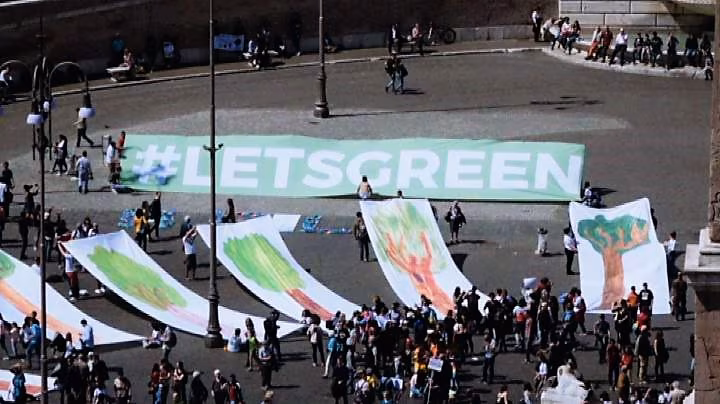 A Roma un flashmob per Greta con gli alberi disegnati dai bambini