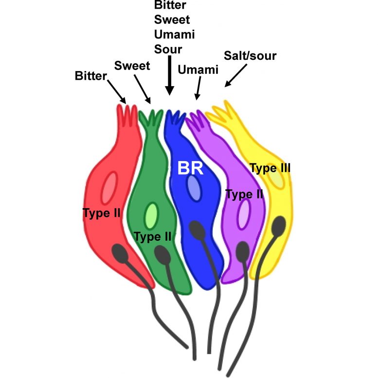Ci sono tre tipi di cellule gustative: quelle di tipo I fungono da cellule di supporto, quelle di tipo II rilevano i gusti amaro, dolce e umami, quelle di tipo III rilevano i sapori aspri e salati. In una ricerca condotta sui topi gli studiosi hanno scoperto un sottoinsieme sconosciuto di cellule di tipo III che hanno dimostrato di essere “ampiamente reattive”. Infatti, potevano percepire l’acido usando una via di segnalazione e il dolce, l’amaro e l’umami usandone un’altra. L’idea che i mammiferi potessero possedere cellule gustative ampiamente reattive è stata avanzata da più gruppi di studio, ma in precedenza nessuno le aveva isolate e identificate. I ricercatori sospettano che le cellule ampiamente reattive diano un contributo significativo alla capacità di gustare.