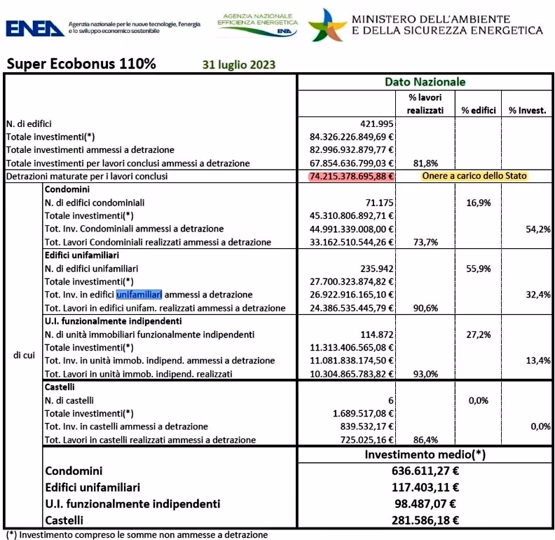 Dalla nota riservata che l’Agenzia delle Entrate si apprende che i crediti legati ai bonus edilizi sono cresciuti da 110 a 146 miliardi di euro, di cui solo 23 sono stati compensati e portati a riduzione delle tasse dovute. Gli altri 123 miliardi, che potranno essere scontati in un quadriennio, sono in buona parte alla ricerca di un compratore. Secondo il Corriere, “il bonus per i lavori sulle facciate introdotto nel 2020, al 90%, ma senza prezziario e massimali, doveva costare 5,9 miliardi, ma ne sta costando 26, cinque volte tanto. Per il Superbonus si prevedeva una spesa di 35 miliardi, ma siamo arrivati quasi a cento”.