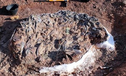 Paleontologi al lavoro su un sito nell'Ovest dell'Argentina dove è stato ritrovato un cimitero di dinosauri vecchio di 220 milioni...