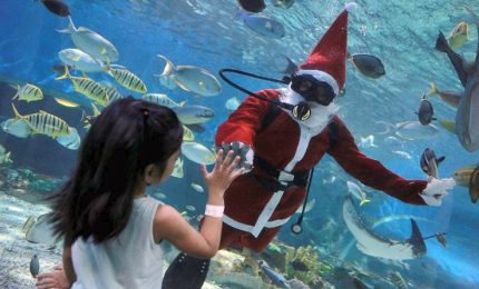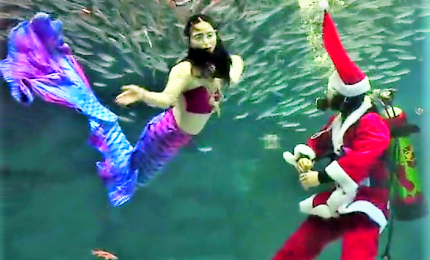 Babbo Natale tra mante, pesci colorate e persino una sirenetta. E' lo spettacolo subacqueo che va in scena per le...