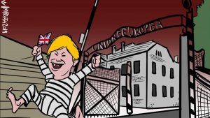 L'Ue come il lager di Auschwitz e l'Uk come un piccolo deportato che fugge. Questo il tono della vignetta sulla...