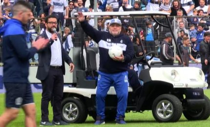 Un'ovazione per Diego Armando Maradona allo stadio di La Plata. Quasi 10 anni dopo aver lasciato la guida dell'Argentina, a...