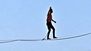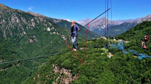 Impresa tra cielo e terra del funambolo Andrea Loreni