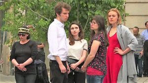 Un uomo israeliano discute animatamente con una donna palestinese a Gerusalemme. I due paesi continuano a vivere momenti di guerra...