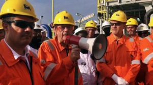 Tuta ignifuga arancione, caschetto giallo, occhiali protettivi, guanti, megafono per un discorso improvvisato. Paolo Gentiloni, in un look inedito, ha...