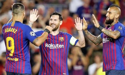 Un Suarez dal tocco fatato, un doppio Messi con un colpo stratosferico e una serata da record: il Barcellona strapazza...