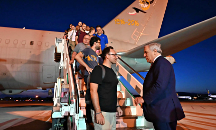 E` atterrato nella notte all`Aeroporto di Pratica di Mare il KC 767 dell`Aeronautica Militare con a bordo 65 militari del...