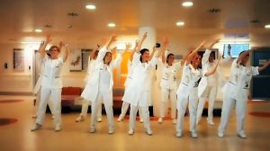 Il flash mob di un gruppo di infermiere dell'Istituto Gaslini di Genova a passi di danza per strappare un sorriso...