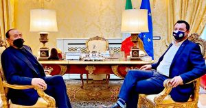 L'effetto Draghi sul centrodestra sta tutto in una foto. Quella che ritrae Silvio Berlusconi e Matteo Salvini che chiacchierano amabilmente...