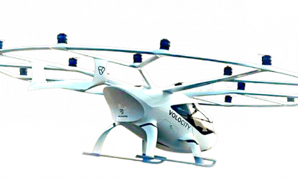 Primo volo di prova per Volocity, l'aerotaxi che collegherà l'aeroporto di Fiumicino con la Stazione Termini di Roma. AdR, Volocopter,...
