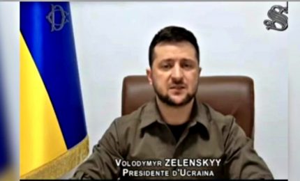 Circa il 20% del territorio ucraino è occupato oggi dalle forze russe. Il presidente ucraino, Volodymyr Zelenskiy, interviene al parlamento...