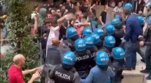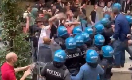 Disordini e forti momenti di tensione tra forze dell'ordine e studenti all'Università La Sapienza di Roma durante un sit-in di...