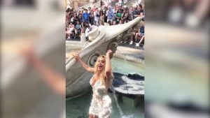 "Bagno stellare" per la showgirl Valeria Marini nella Barcaccia a Roma per promuovere il suo ultimo singolo "Me gusta". Mini...