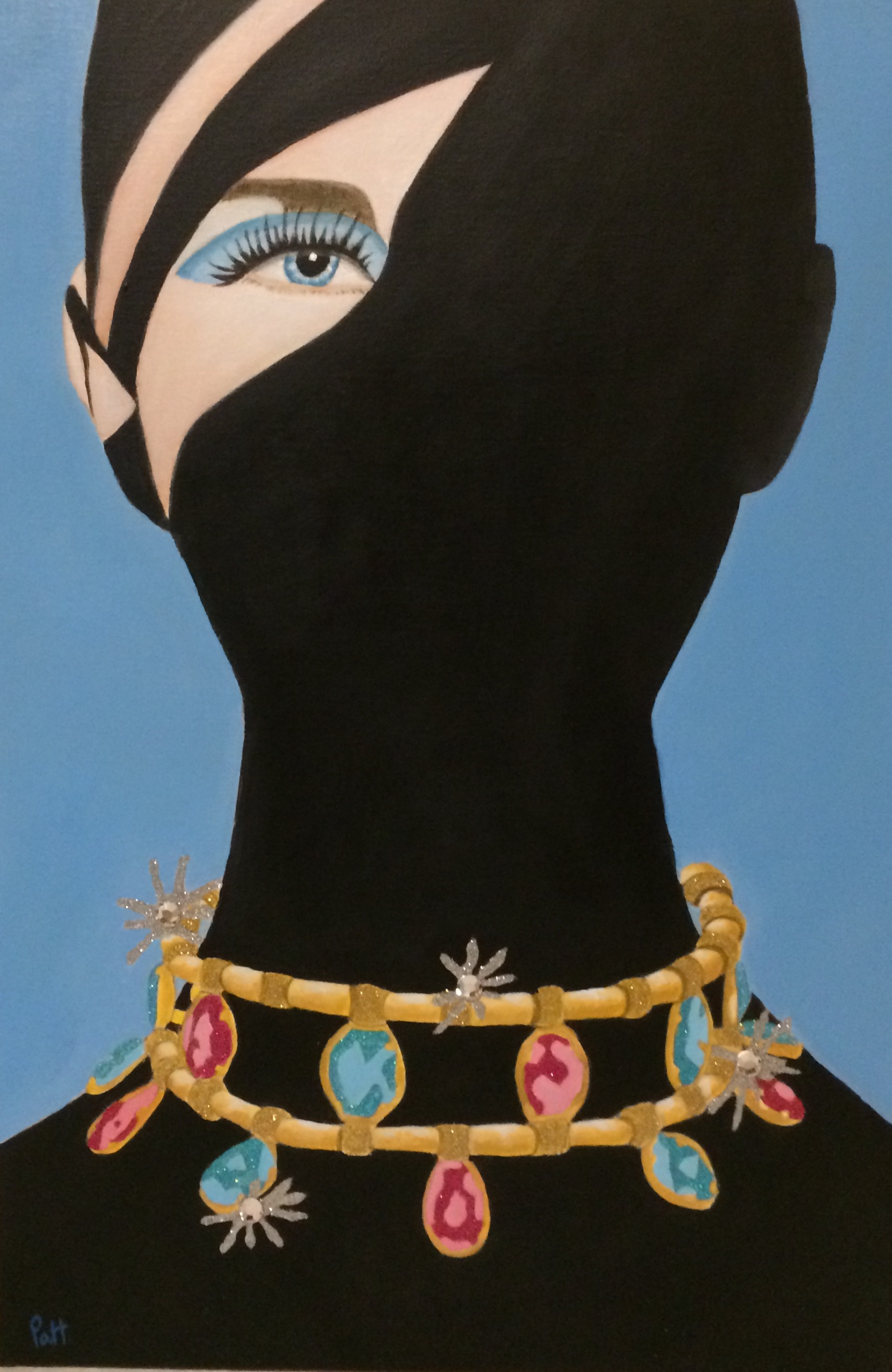 Patrizia Poli inizia il suo percorso artistico come creatrice di gioielli ma ben presto si dedica all’arte figurativa, pur non abbandonando mai la sua professione, e nel corso degli anni ha partecipato a molte collettive sia in Italia che all’estero – Galleria Art 69 di New York, Galleria Art 76 di Dubai, Galleria Thuillier di Parigi, The Crypt Gallery di Londra -. E il suo amore per il bello, per lo stile che le viene dagli anni di esperienza nella lavorazione dell’oro, emerge in maniera evidente anche nelle sue opere pittoriche, chic, raffinate, eleganti dal punto di vista puramente estetico, ma assolutamente profonde se si guarda oltre ciò che una prima occhiata scorge, evidenziando proprio ciò che accade nella realtà contemporanea in cui tutti cercano di apparire al meglio di sé, in cui la vera essenza deve essere celata dall’immagine professionale, dal proprio status sociale, da uno schermo di durezza, dall’apparenza di un bell’abito o un bel gioiello, per porre un velo su un’interiorità fragile, delicata, che deve essere protetta perché può essere facilmente ferita.