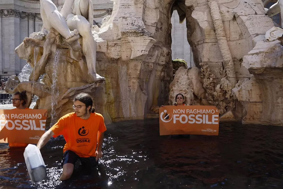 Ultima Generazione colora di nero le acque Fontana dei Quattro fiumi