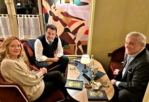 La presidente del Consiglio, al termine dei lavori, ha cenato in hotel con gli stessi Tajani e Fitto. Salvini è arrivato intorno alle 22.30, ha salutato Fitto nella hall, e si è accomodato con il collega degli Esteri a un tavolino, dove poco dopo li ha raggiunti la premier. Grandi sorrisi, da parte loro, con la premier che ha fatto con le dita il segno della vittoria in direzione dei giornalisti che, tenuti fuori dall’hotel, stavano assiepati per sbirciare dalla finestra. Poi ai tre si è unito anche Fitto.