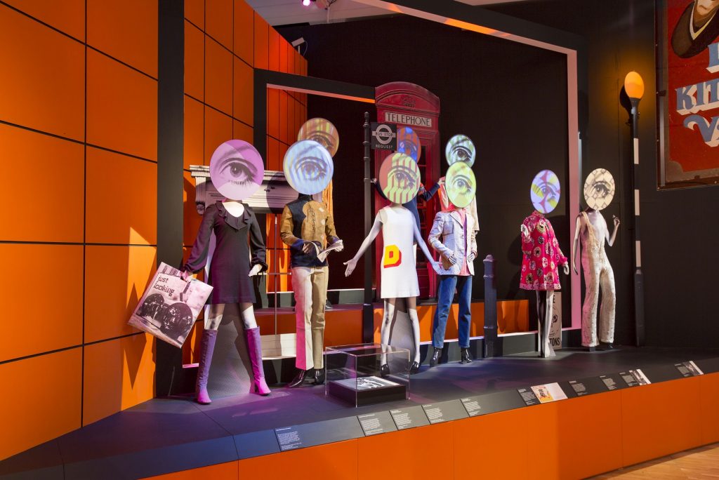 fino ai Beatles passando per i miti dell’epoca: dalle forme androgine e le pettinature a maschietto di Twiggy e Jean Shrimpton alla minigonna di Mary Quant, ai dischi con le copertine pischedeliche proprio per richiamare quel libero uso di droghe che erano diventate necessarie a gridare il no a tutto ciò che era precedente – simbolo di ribellione assoluta senza però prevederne le conseguenze disastrose che solo più tardi si sono manifestate -, dagli abiti di scena dei Rolling Stones ai guru delle nuove pettinature e di tutte le tendenze che nascevano a Carnaby Street, simbolo ideale di un mondo in cambiamento proprio per la sua voce innovativa. Sono cinquecento gli oggetti che fanno parte della straordinaria esposizione che, prima di Milano, ha avuto luogo al Victoria and Albert Museum di Londra, arricchiti e completati dall’accompagnamento musicale, di sala in sala, legato a ogni tappa di quegli anni rivoluzionari. Il percorso espositivo descrive accuratamente quanti e quali ambiti sono stati toccati dall’onda lunga di quegli anni: la moda assolutamente spogliata dal rigore inamidato di fine anni Cinquanta e della prima metà degli anni Sessanta, la musica in cui si parlava di temi sociali forti e di impatto che in precedenza non erano mai stati affrontati nelle canzoni, le droghe, i locali e la controcultura; i diritti umani su cui costruire una nuova cultura e le proteste di strada; l’attacco al consumismo; i festival; le comunità alternative.